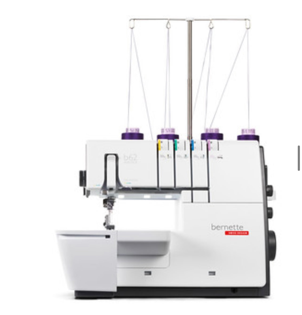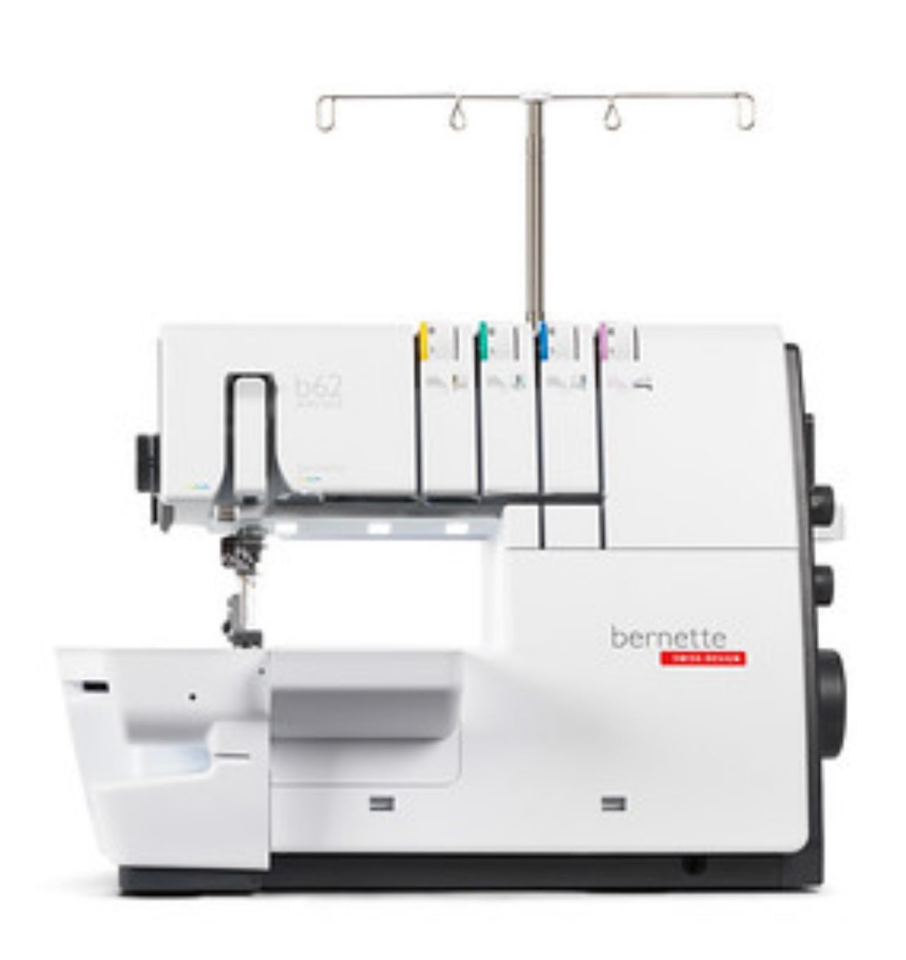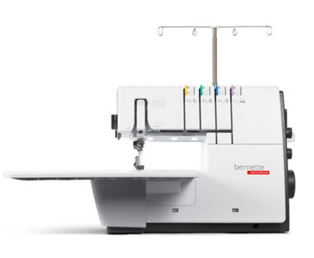 The bernette 62 AIRLOCK is the coverstitch machine of the b60 series. The automatic air threader makes threading the looper thread child's play. The machine has 4 coverstitches and 3 chainstitches and can be used for countless applications, with which different fabric types – stretchy fabrics in particular – can be sewn perfectly. The presser foot can be lowered and temporarily raised with the knee lifter, leaving both hands free to guide the fabric. The slide-on table and matching coverstitch insert increase the sewing area and provide sufficient space for large projects. Thanks to the 5 LEDs, the large working area is brightly illuminated.
