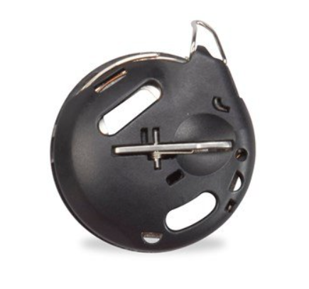 Bernina black bobbin case is compatible with the Bernina Hook bobbins and used for sewing and embroidery, and holds 70% more thread than standard bobbins.