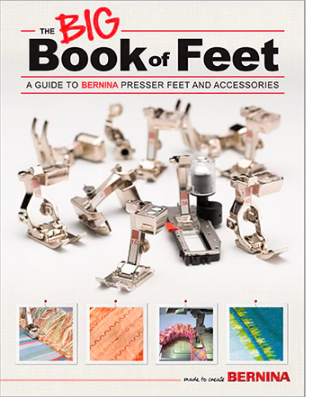 It’s all about feet! If you own multiple presser feet and accessories for your machine, The Big Book of Feet can help you get the most use from them. If you don’t own many presser feet, this book offers a glimpse into all the fun you can have exploring practical techniques and creative embellishments using specialty presser feet and attachments for your BERNINA machine.