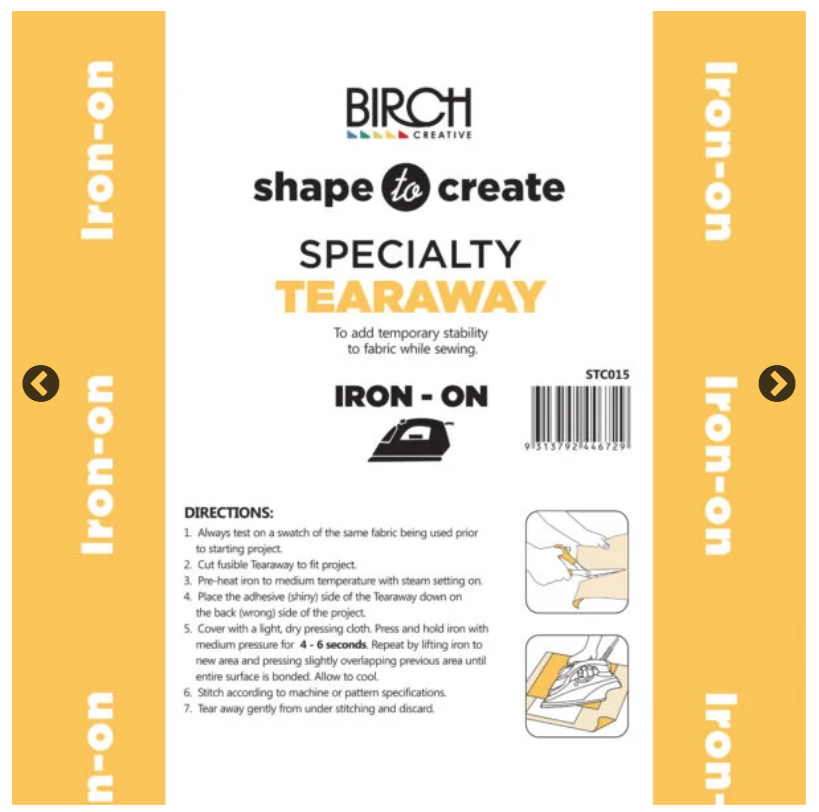 Shape to Create iron on medium Specialty Tearaway is ideal for adding temporary stability to fabric while sewing.