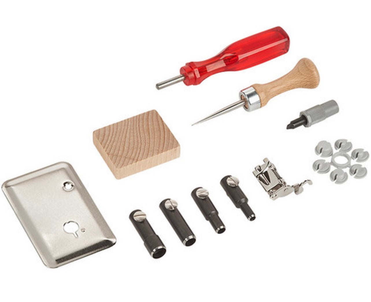Used with presser foot 92 (included) this device enables you to embroider beautiful decorative and functional eyelets.