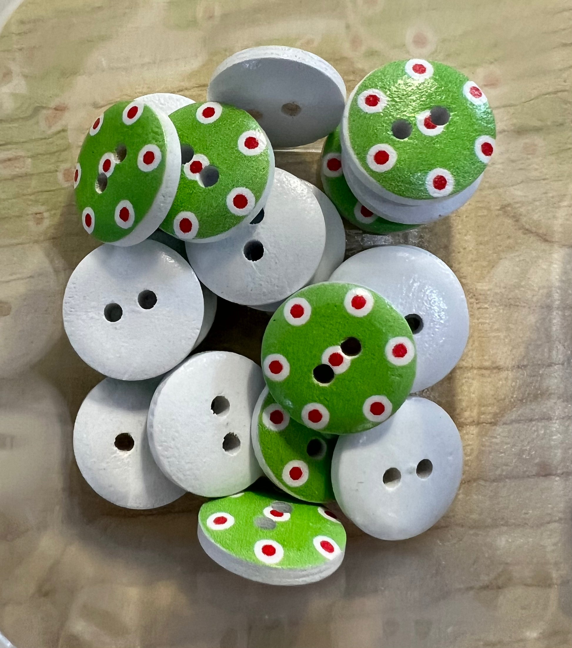 Green with White/Red dot buttons 1.5cm