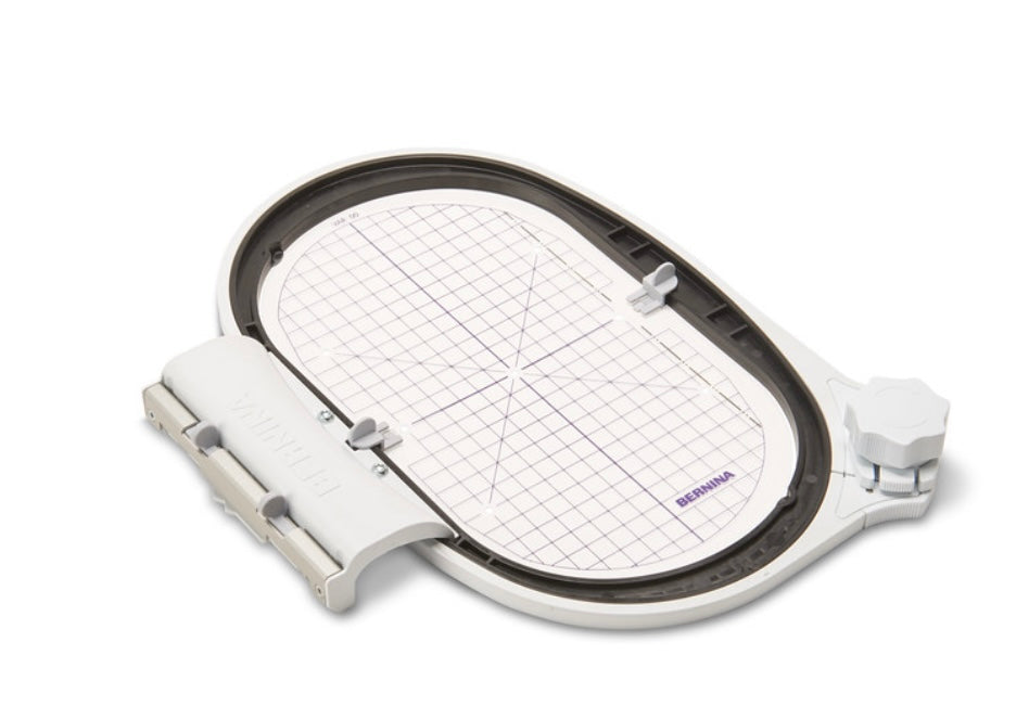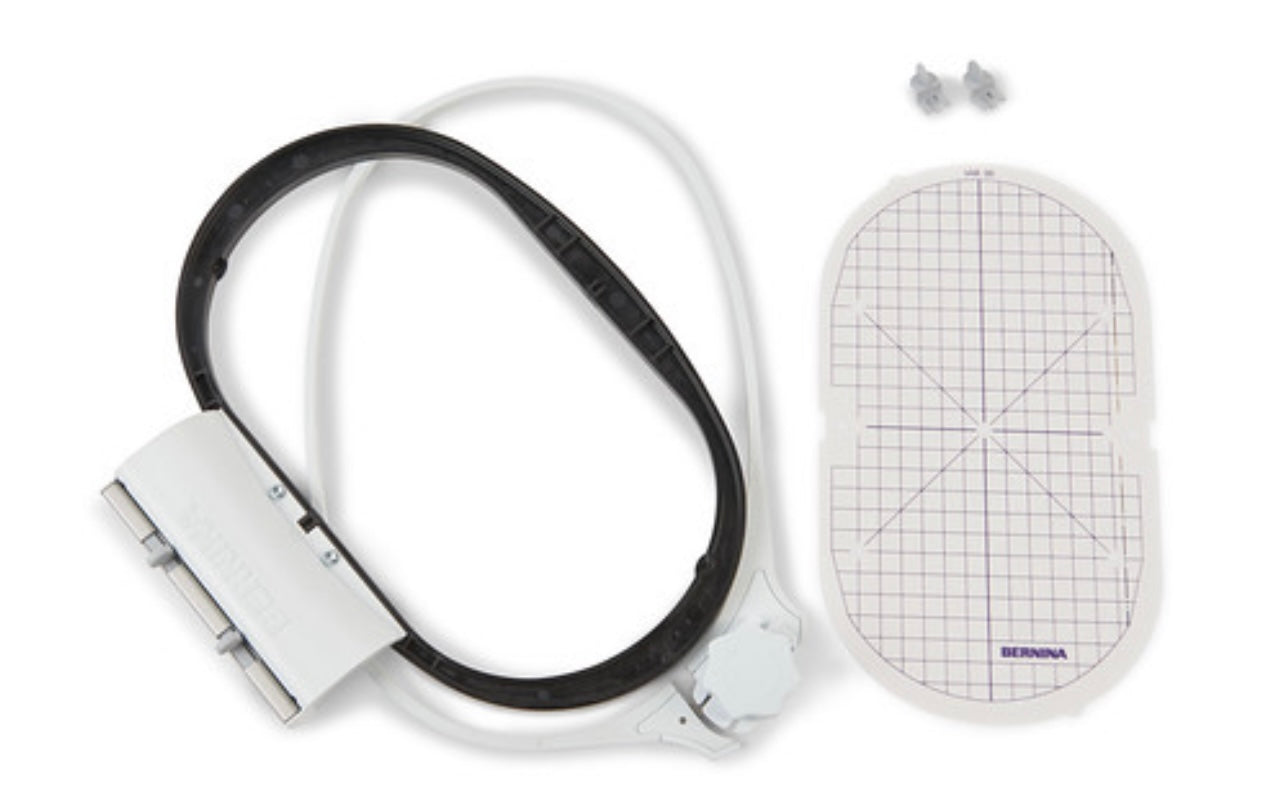 The BERNINA Large Freearm Embroidery Hoop enables the use of the BERNINA freearm with tubular items, such as pre-made bags, or T-Shirts, without requiring unsewing and re-sewing. Thanks to this unique technology, you will save on additional stabilizer and fabric for hooping while enjoying the benefits of freearm embroidery with larger projects.