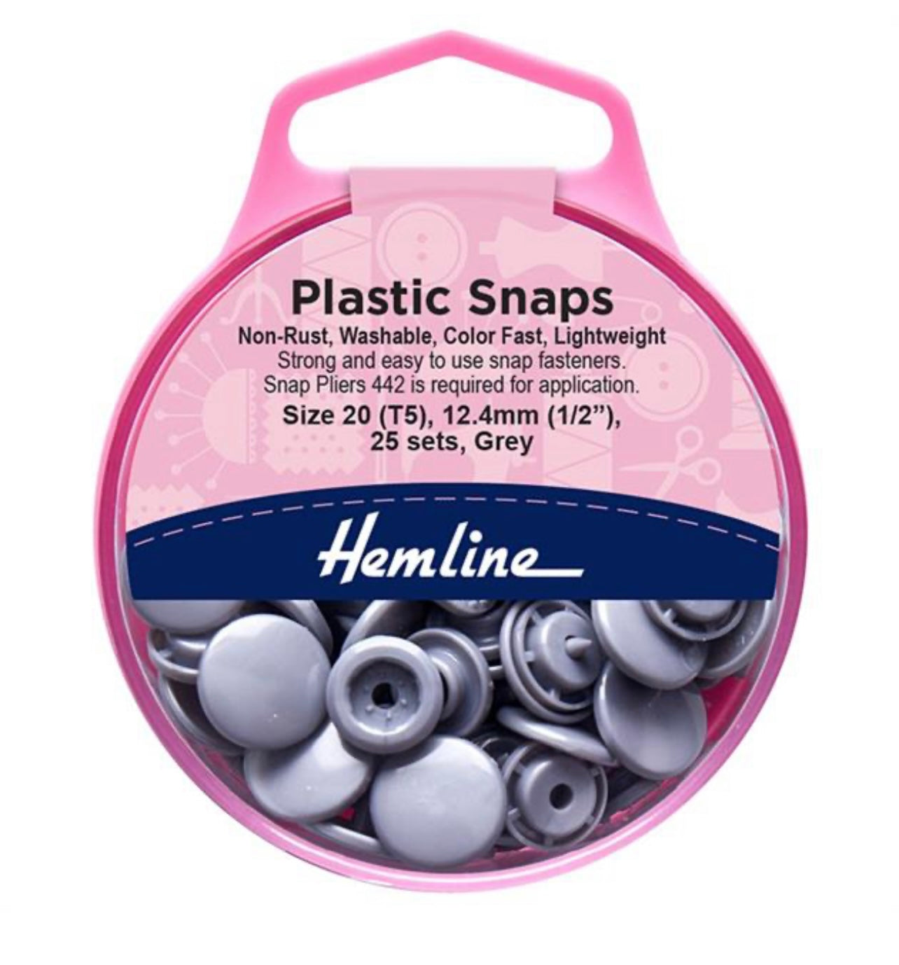 Hemline Kam Plastic Snaps are non-rust, washable, colour fast, lightweight, strong and easy to use snap fasteners. They are very convenient snaps for baby bibs, diapers, baby clothes and other clothes. Size: 20 (T5) with a diameter of 12.4mm is best suited for heavy fabrics. Snap pliers 442 is required for the application. Snaps set contain 25 pieces.