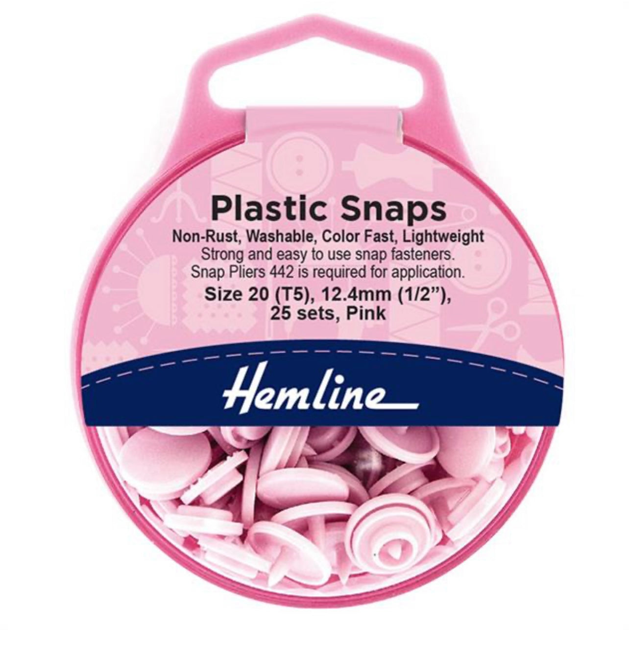 Hemline Kam Plastic Snaps are non-rust, washable, colour fast, lightweight, strong and easy to use snap fasteners. They are very convenient snaps for baby bibs, diapers, baby clothes and other clothes. Size: 20 (T5) with a diameter of 12.4mm is best suited for heavy fabrics. Snap pliers 442 is required for the application. Snaps set contain 25 pieces.